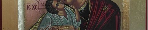Εικόνα ξύλινη σε σκαφτή χρυσοτυπία με την Παναγία τη Γλυκοφιλούσα..